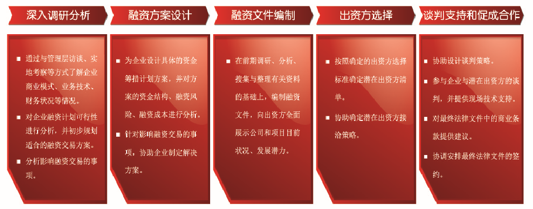 華夏經(jīng)緯以豐富的專業(yè)知識和融資咨詢經(jīng)驗為企業(yè)提供融資方面的咨詢服務(wù),利用我們對金融市場融資領(lǐng)域政策走向的把握和市場變化的分析研究,發(fā)揮與各類金融機構(gòu)良好合作關(guān)系的優(yōu)勢,協(xié)助企業(yè)實現(xiàn)融資目標,提升企業(yè)的價值創(chuàng)造能力。